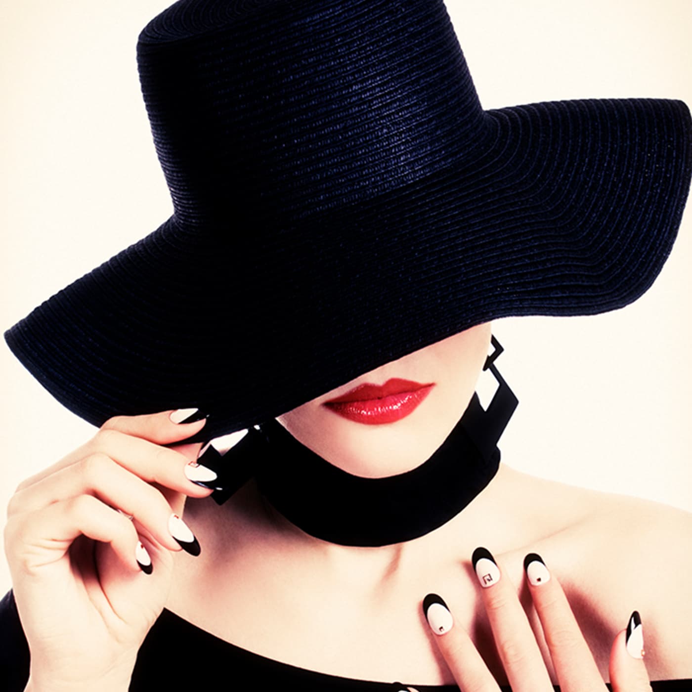 VINTAGE PORTRAIT OF BEAUTIFUL WOMAN WITH BLACK HAT