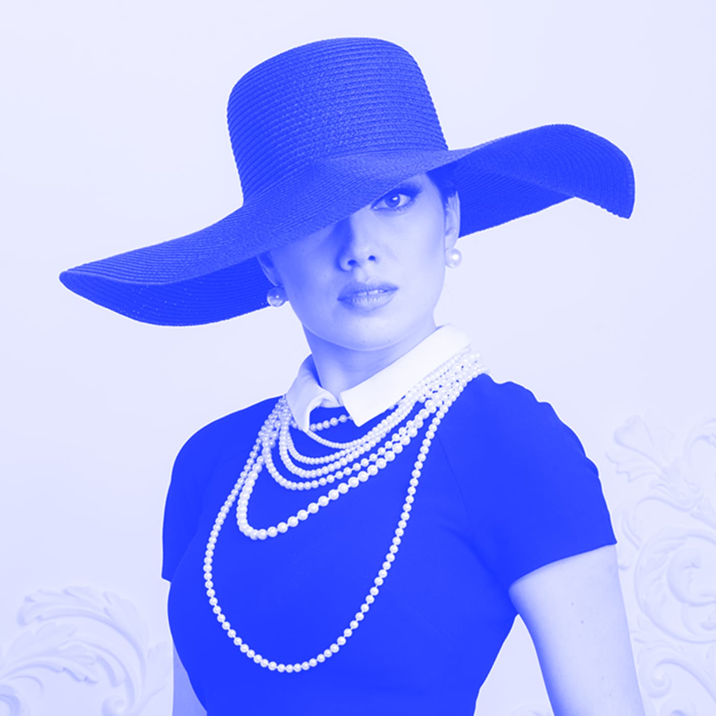 VINTAGE PORTRAIT OF BEAUTIFUL WOMAN WITH BLACK HAT